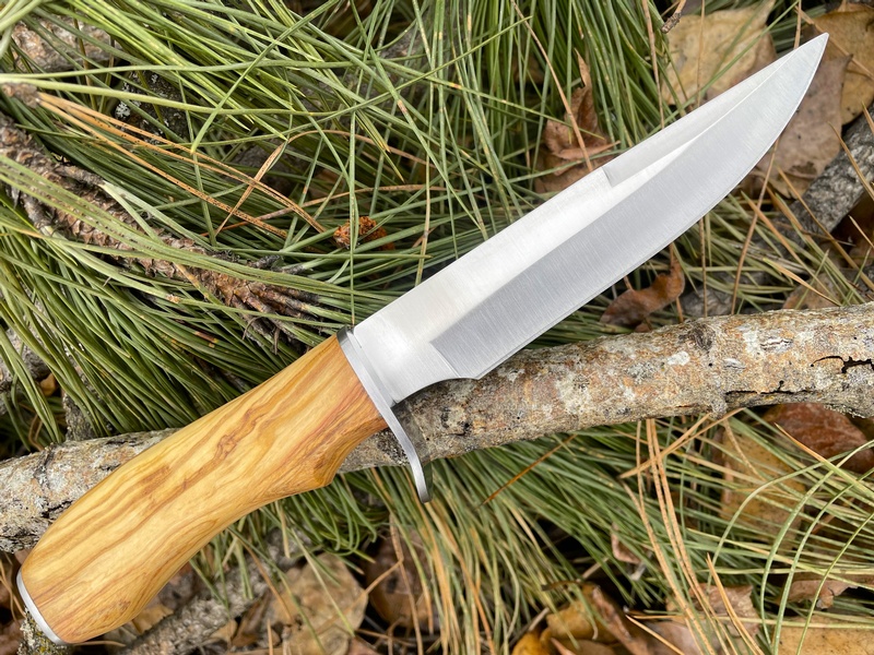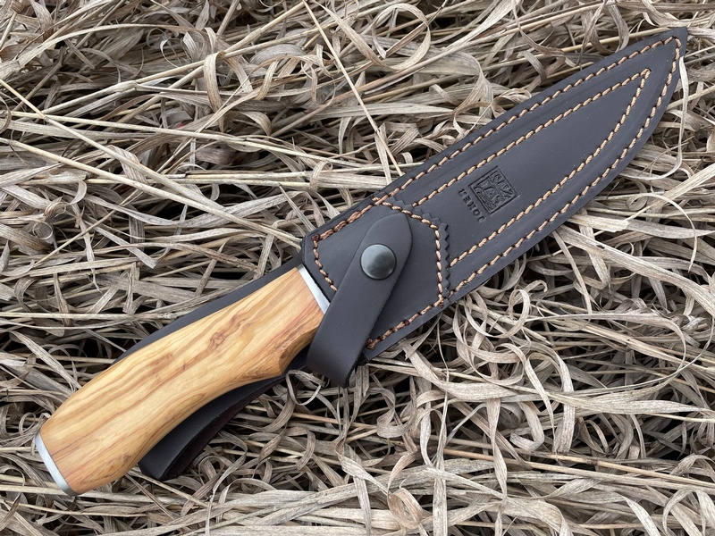 The oversized steel fingerguard makes it a VERY secure knife to hold and the Olivewood handle looks great! Like all Joker knives it is made in SPAIN! and comes with a quality leather sheath (See Pics) Great for your outdoor adventures!