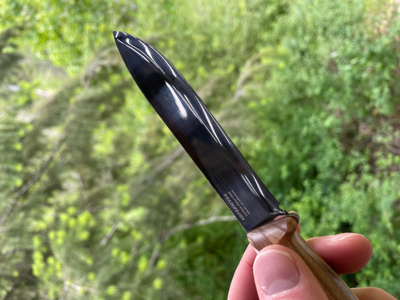 The BS1 is an easy to use, compact Feild Knife. Great Whittler, Food Prep and Camp Duties. Simple and Solid. Full Broad tang with Walnut Slabs and Hex Screws.