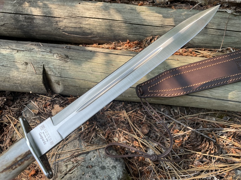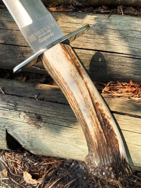 The Guepardo is a very unique Traditional Spanish blade. The knife is very comfortable to hold with a rounded antler grip, it also has a strong steel crossguard which aides in the functionality. The Double edged Blade has the MOVA 1.4116 Steel, which is very tough and durable, excellent for a bush tool!