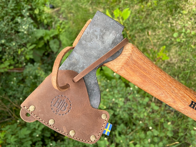 Dvardala is a gift that hunters anywhere will appreciate, and it could of course also be used for processing game out in the field. The axe is hand-forged in Hults Bruk according to tradition since 1697. The head weighs 0.7 kg and is made of a Swedish Steel. The semi-straight edge has a Scandinavian premium grind that is polished, razor sharp and ready for use. The axe has a curved, narrow handle with a pronounced end knob for a more secure grip. The sheath is made in Sweden with hides from Swedish cows! The leather is vegetable tanned full grain leather for the best possible durability and the natural treatment means that it will age beautifully when worn.