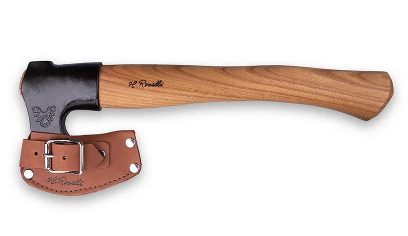This is Roselli's Finnish handmade outdoor axe in a very practical size with its short handle, made out of beautiful red elm, which you can easily take with you everywhere. Now with a newly designed handle for a more optimal balance.