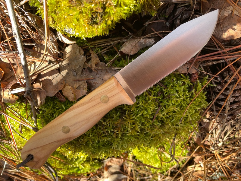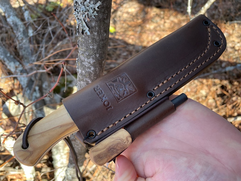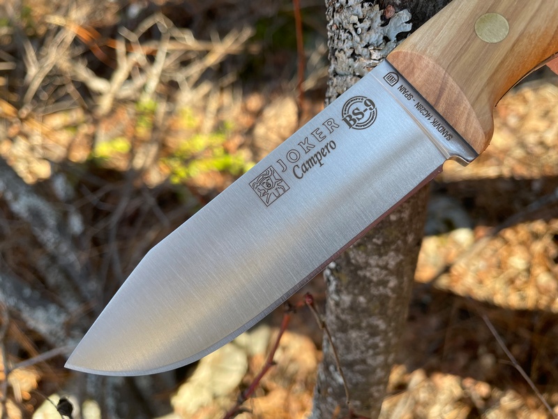 The Joker Campero is an excellent bushcraft and/or hunting blade, full broad tang, steel pins, and a quality leather sheath make this the perfect woods companion. It is very comfortable in the hand and a pleasure to use. The blade profile is a very nicely designed clip point.