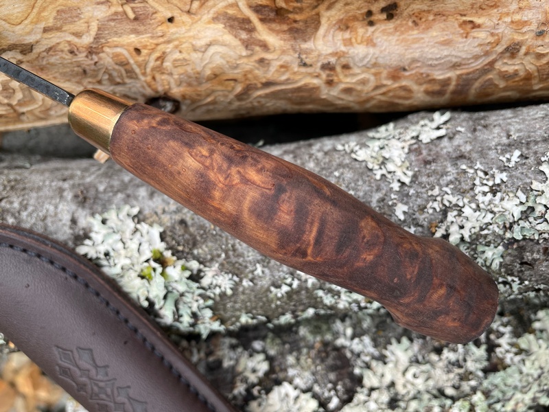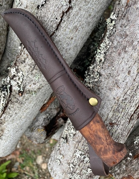 The Ahti-puukkos blade is made of black and hardened carbon steel. Because of the high-quality blade materials, the knives stay sharp and are also easy to sharpen. Dry and clean the knife after use. For example cooking oil will protect the carbon steel blade from rust. Sharpen the knife regularly, a totally dull blade is always more difficult to sharpen. A wooden shaft is not dishwasher-safe. Ahti-puukko is proudly made in the traditional knife-manufacturing town of Kauhava in Ostrobothnia, Finland.