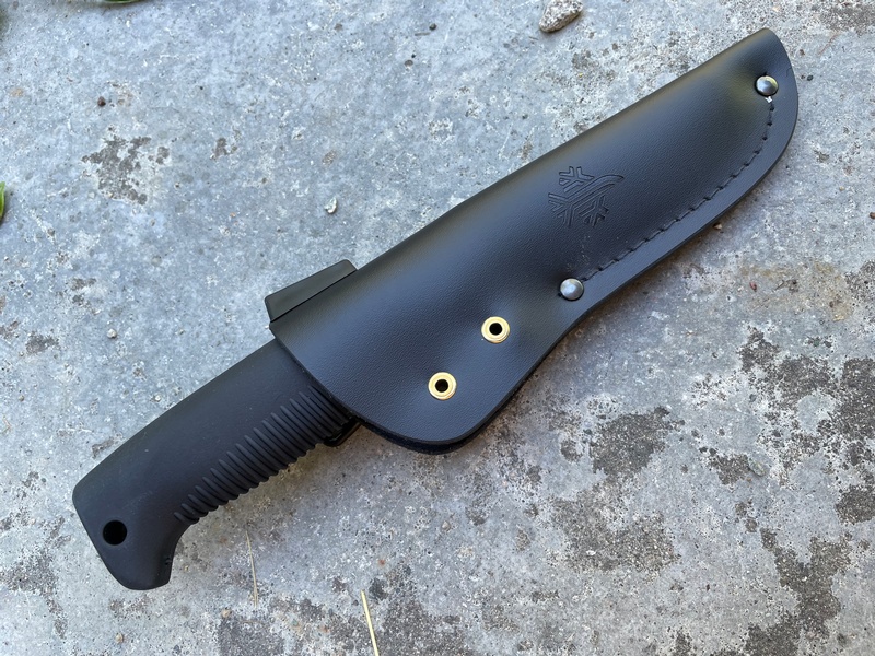The Steel used is the exceptional Austrian N690 a full Stainless with stellar edge holding, high torsional Strength and excellent chip resistance thanks to its very high Colbalt content. A great choice for a Survival, or Bushcraft Blade Steel and compleaments the knife beautifully.