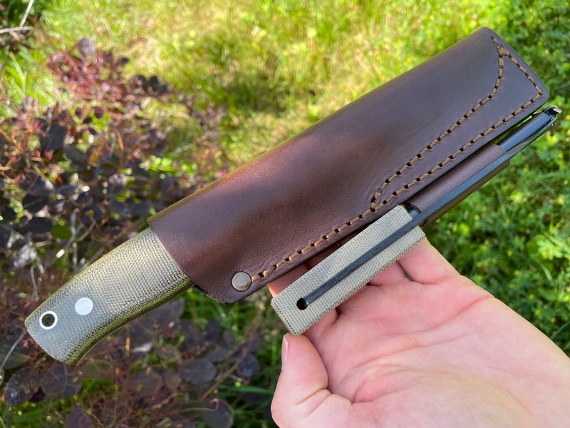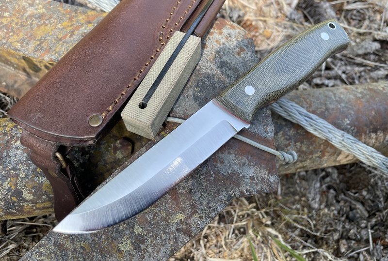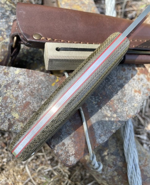 Full Broad tang with Solid Pins and Solid micarta Slabs the knife uses the 80CRV2, a Super Tough Steel, easy to sharpen.