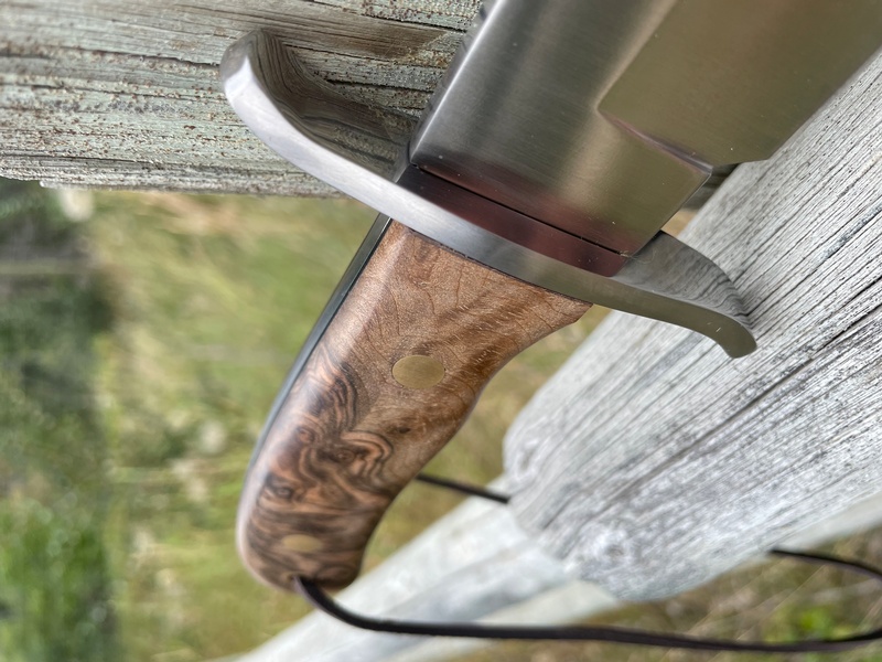 The Tang is Full and Broad, with the two slabs adhered by heavy stainless Pins, again adding to the robust nature of this Bowie.