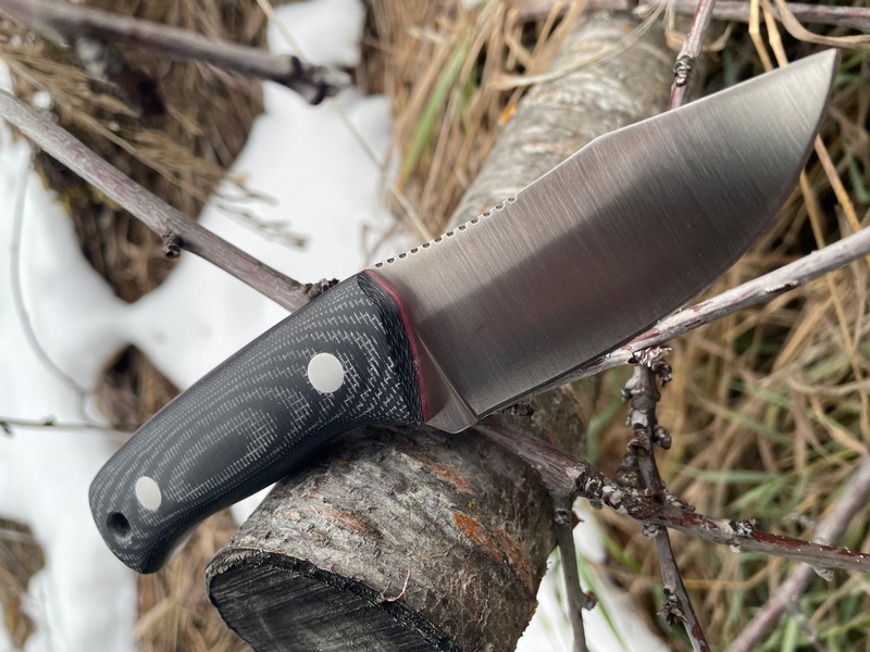 The knife is Full broad tang, and has a good amount of jimping on the top of the blade for better traction. Bohler N695 is a tough, dependable Steel, excellent edge Holding and Corrosion resistance with a Fine, Even Grain.