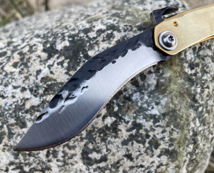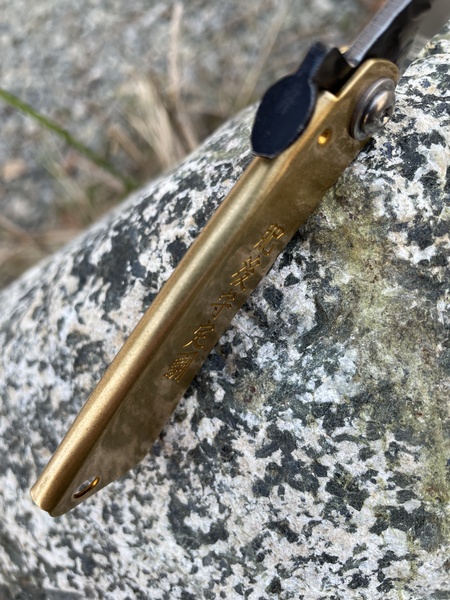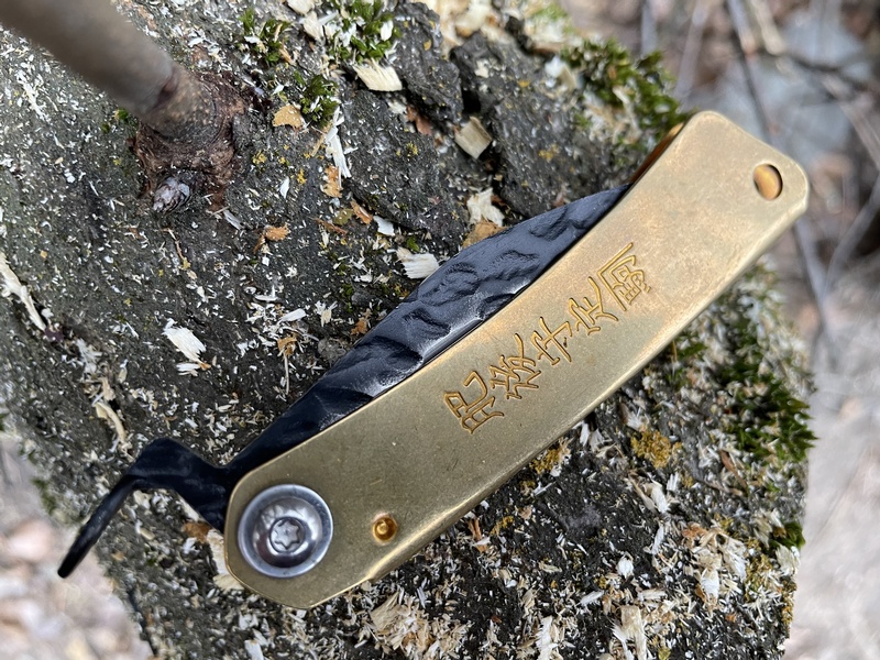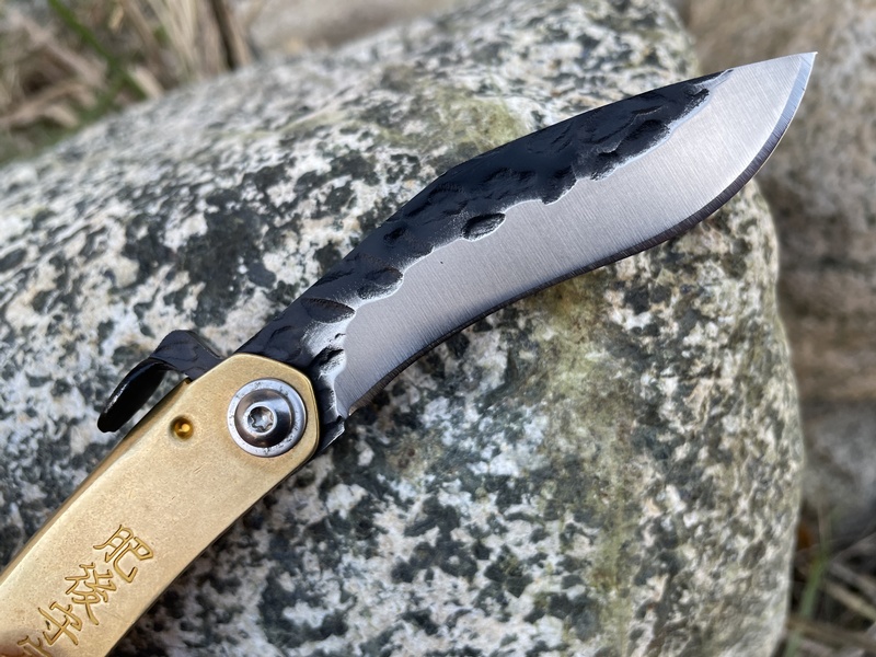 A small and easy to carry little pocket knife with a Kukri style blade. Handle is brass and the steel is the Stainless 3cr13mov. Note that this model does not have a lock.