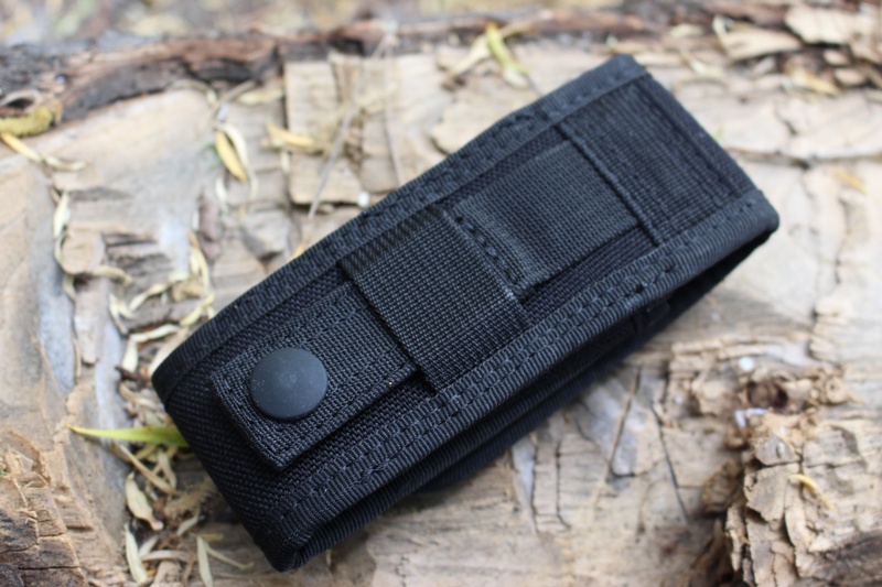 Well made,super tough Cordura pouch from Lionsteel. Custom made to fit thier excellent SR1 folding knives. Velcro closure, with pull tab, snap for belt mount or molle.