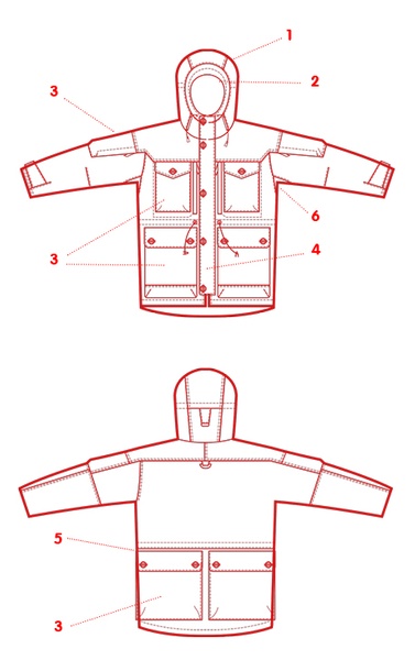 Spacious cut allows for movement, the many pockets (with NATO style taped buttons) are deep and easy to get at, excellent hood, pre shaped sleeves and many reinforcements, storm flaps and additions make for an excellent outdoor outerlayer and a great Bushcraft jacket. Heavy duty G1000 is durable and comfortable and the garment may be further water and wind proofed with the addition of Greenland wax.