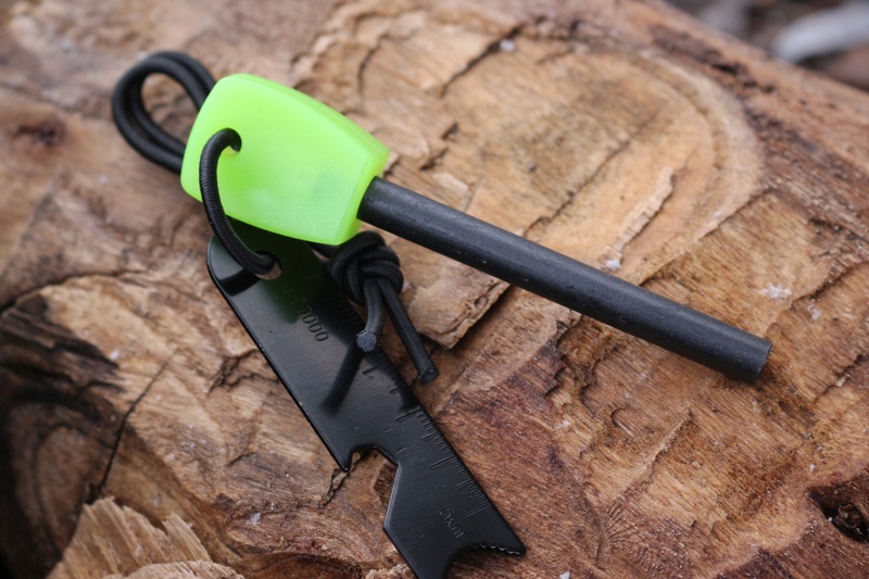 Traditional 5/16ths Army sized firesteel with a luminoius handle. Makes finding this item much easier when the sun goes down!