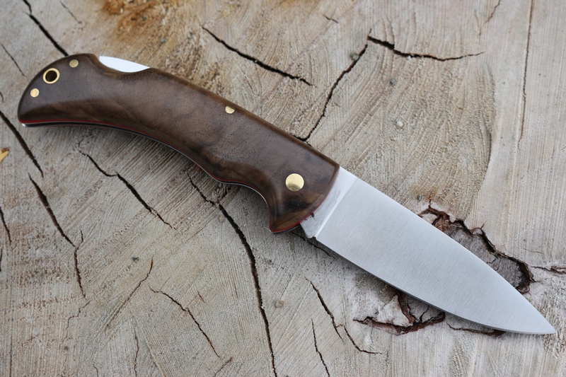 Classic Folding knife from Cudeman Spain! Excellent quality General Purpose Folder, solid steel liners with very nice Walnut slabs, Brass Pins and Red Liners. This has a solid grip in the hand and the wide slabs are contoured and comfortable, with an overall feel of being well made and practical.