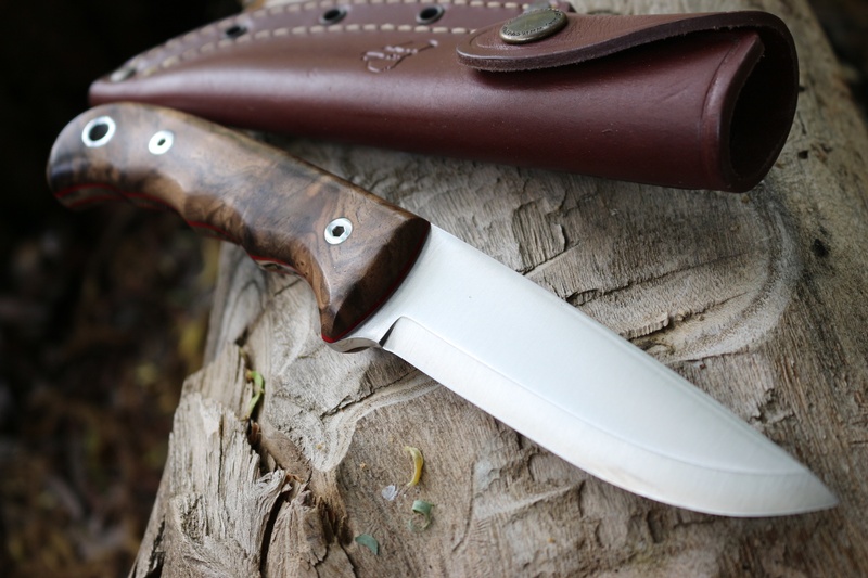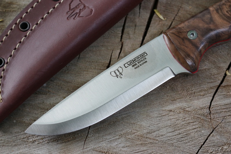 The 4mm full broad tang knife is strong and robustly made, with Walnut slabs and Red Liners, solid stainless allen head screws and stainless lanyard hole. Its a great blade length for control being 4 1/4in and the Bohler N695 steel provides really excellent toughness and very good edge holding (60 HRC).