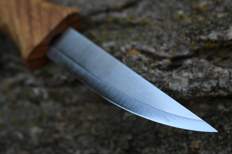 European made quality Sloyd style wood Carving knife. Highly controllable whittling knife with very ergonomic (ambidextrous) and comfortable handle. The straight 3.14in blade is s superb slicer and very precise.