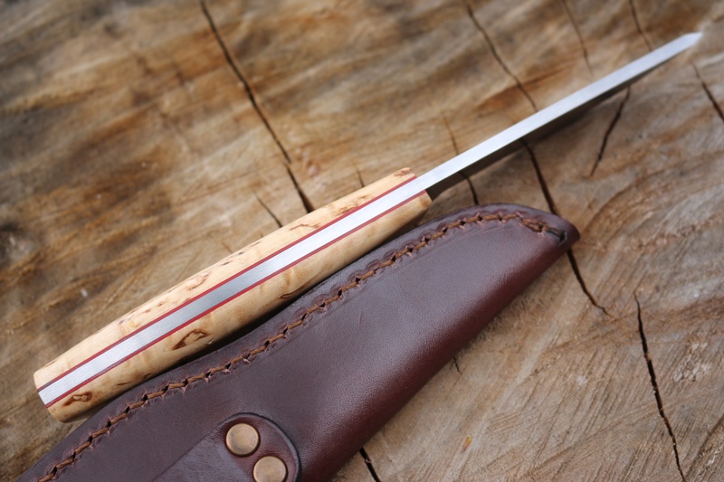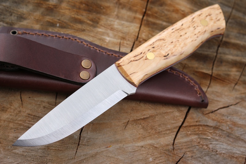 This Trapper is in 01 steel, zero scani grind, comes with leather scandi style dangler sheath in leather.