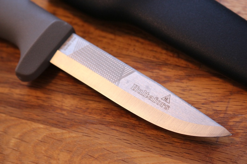Plumber´s knife featuring a file that can be used to remove burrs. The blade is made from German knife steel, 2.5 mm stainless steel that has been hardened to 57–59 HRC.