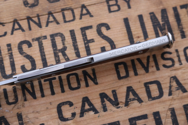 Solid and reliable, these knives are Steel handle with Walnut insert, Carbon German Steel C75 blade with a chunky backlock.