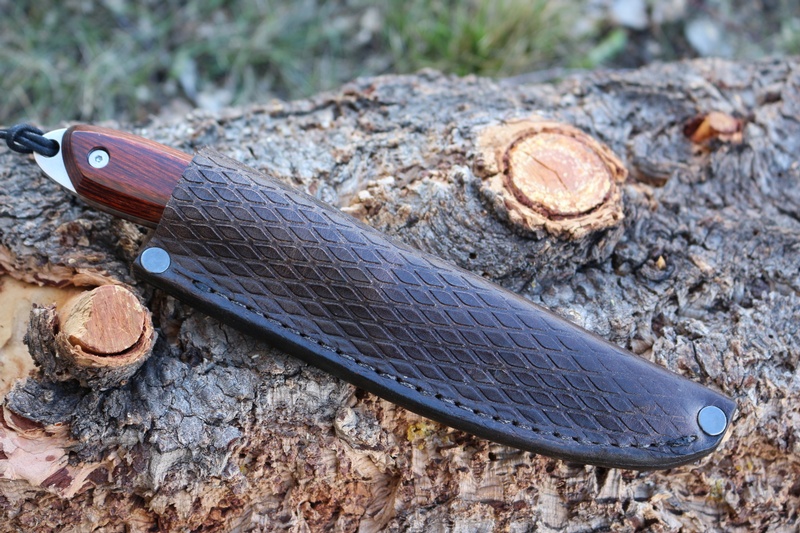 Knife comes with an 8oz vegetable Tanned Diamond textured sheath (no warranty on the sheath).
