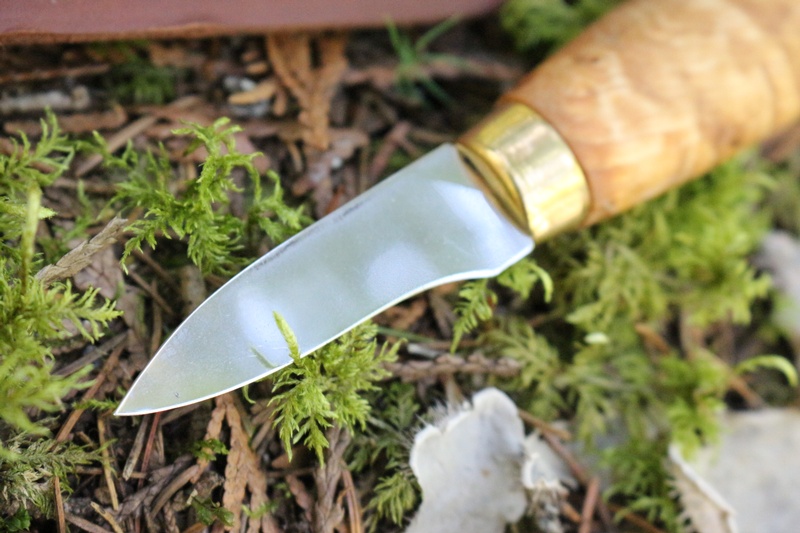 Excellent Finnish made knife, designed specifically for use while collecting Mushrooms. The compact knife has a comfortable traditonally shaped handle, made from Curly Birch (sourced from Finland) with a Brass ferrule.