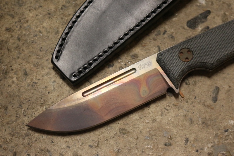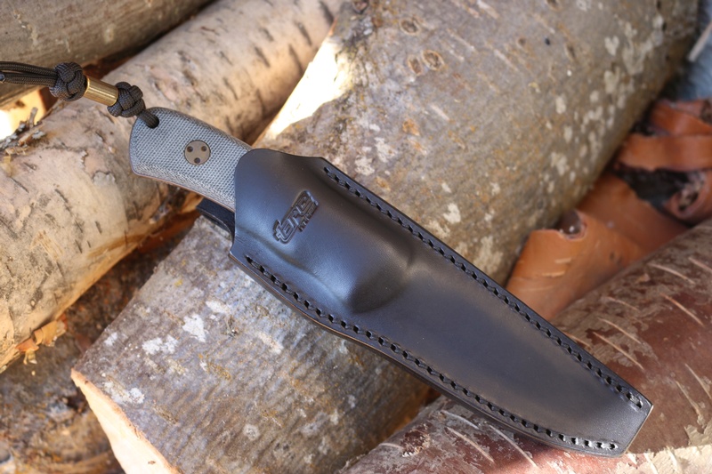 Using the super Steel RWL 34, this knife is a great all around Bushcraft and Outdoorsman's knife, flat ground (with fine bevel) full broad tang (with the raised, capped spine) deep finger choil and solid (textured) Black G10 Slabs.