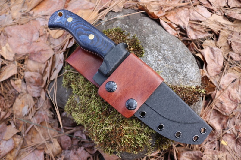 The handle is a Blend of Blue/Black micarta and is what gives the knife its name.