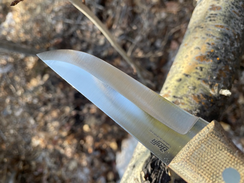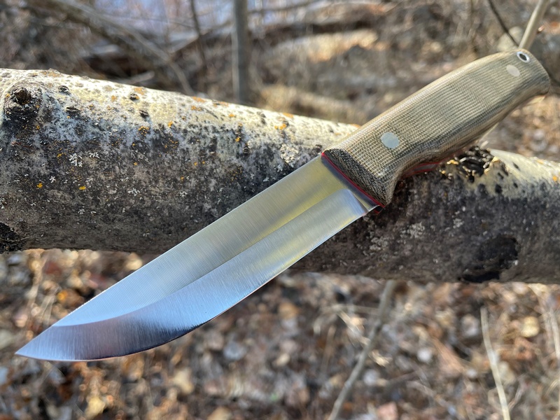Full Broad tang with Solid Pins and Solid micarta Slabs the knife uses the 80CRV2, a Super Tough Steel, easy to sharpen.