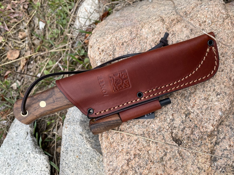 Includes a good leather sheath and a matching Walnut Firesteel.