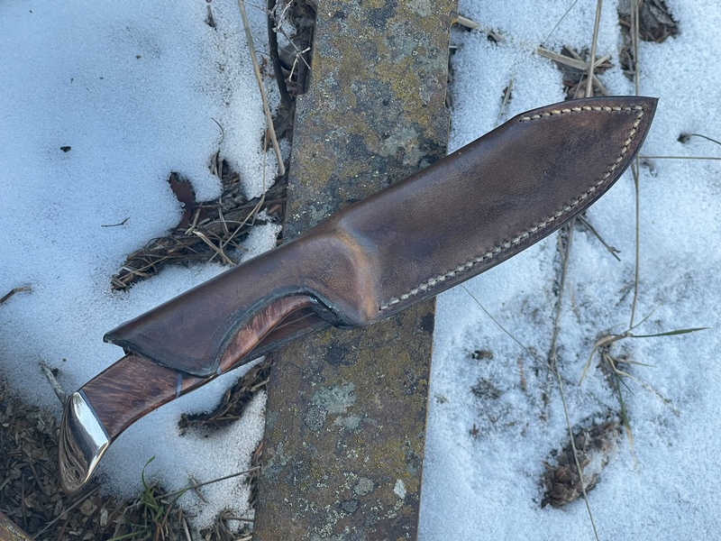 Sheath is made of natural 8-9oz veg tan leather.