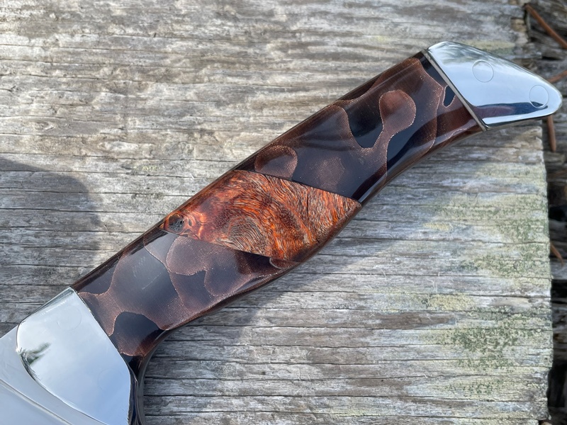 Samuel B Dallaire Camping Knife Magnacut (Resin Black & Copper Mesh with Karelian Birch Inlay)