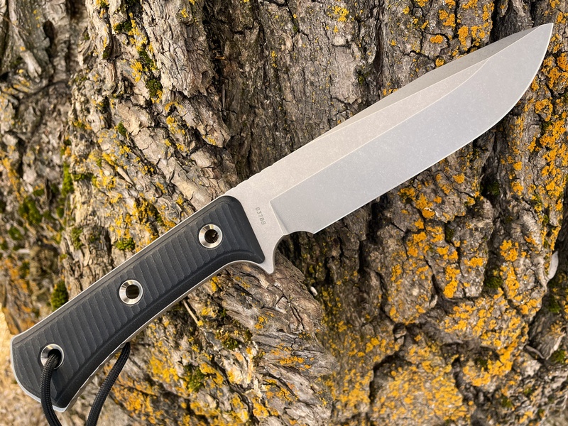 The Sabre ground 6.5in blade is 60HRC and gives tremendous bite, the balance and handling of the knife is excellent and the textured solid Micarta slabs are tough and grippy. Typically seen on smaller knives, ELMAX is an outstanding steel in terms of strength, edge holding and corrosion resistance, its one of the best choices for an outdoor knife and in the Apocalypse you have a lot of it!.