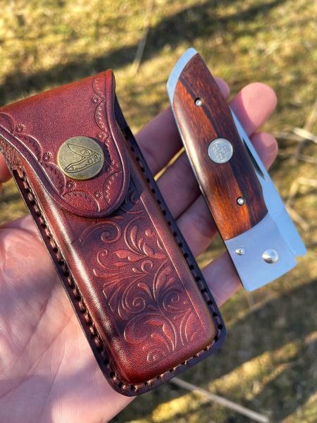 Fallkniven Phantom Desert Ironwood Elmax folder with Leather sheath and presentation Box