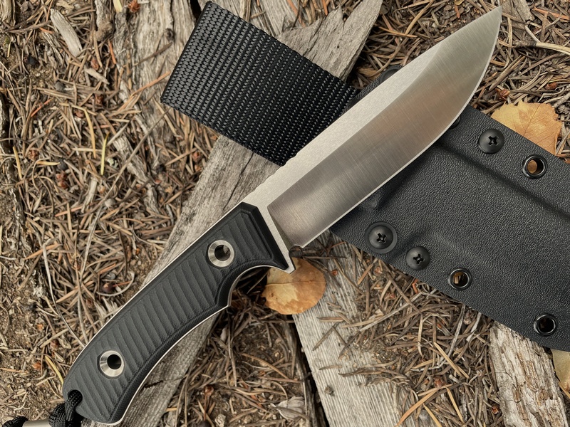 The double black micarta handle gives you great traction when in use thanks to its nice texturing and ergonomic shape, and it looks great too! A really high end Bushcraft knife. It comes with a very nice ambidextrous kydex sheath.