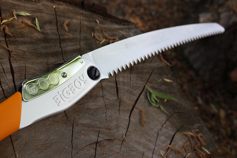 A quality larger folding saw this, all the usual Silky quality in the design and blade and locks etc, but this one is sized up for a longer stroke and reach. Excellent Japanese steel blade lasts a long time and the tooth design is superb at cutting wood fibres, the grip is sound and the lock strong. Everything you'd want for a larger folding saw....and an Orange handle so you won't put it down and forget where!