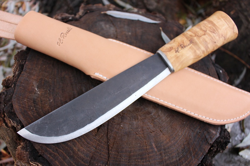 This is the large Leuku, made by Roselli in Finland. The Leuku is the allaround knife of the Sami, a simple but sturdy and absolutely practical design that has stayed the test of time. The steel is a high carbon, 58 HRC, scandi ground and the handle is locally sourced curly birch. A great outdoor knife, simple and practical.