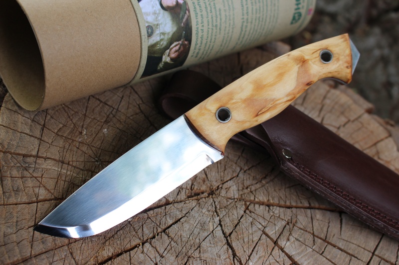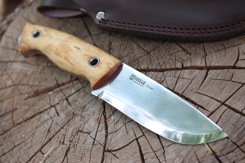 The Utvær featurs a strong, full tang construction, ample curly birch handle and 4-inch blade of Sandvik 12C27 steel. The drop point Scandinavian ground blade, leather sheath, and curly birch wood handle characterize Helle’s renowned strength, functionality and beauty.