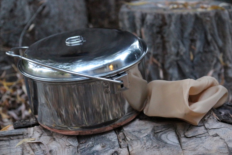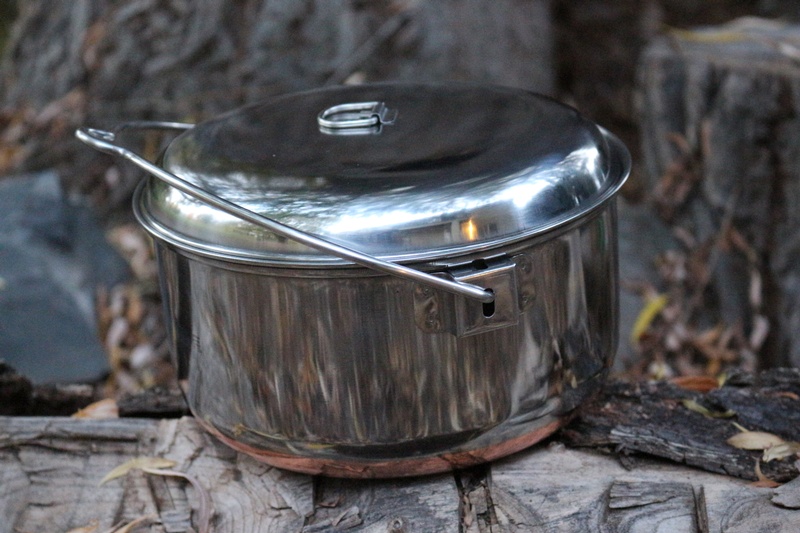 Excellent quality bail arm pan from Norway. Stainless steel with copper reinforced bottom and solid bail arm (with indent) and D ring lid.