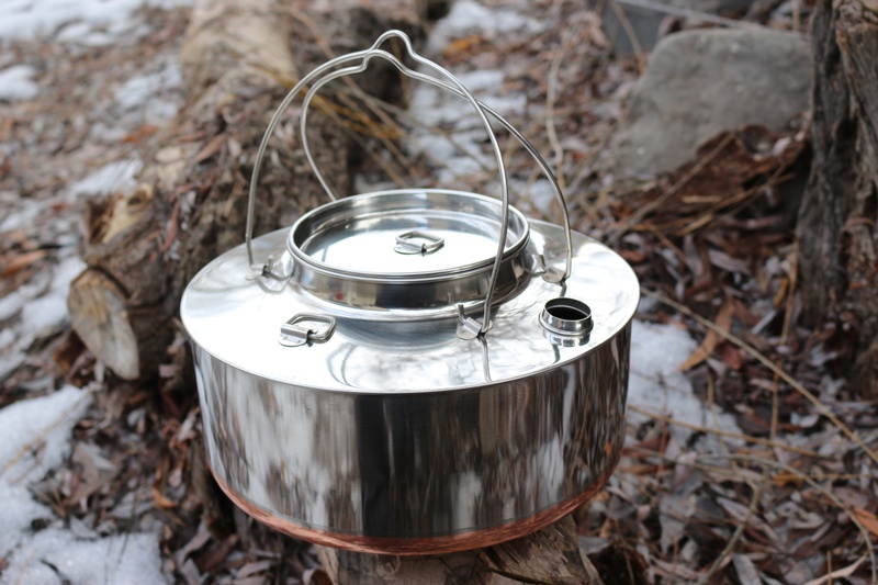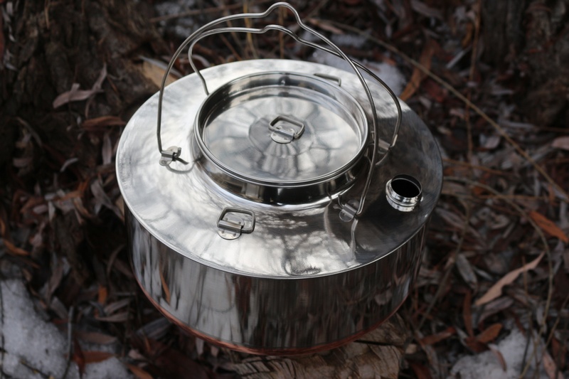 Excellent quality stainless steel camp kettle from Norway. This one has a big 4L capacity and has double D rings, double folding indent handles and D ring lid.