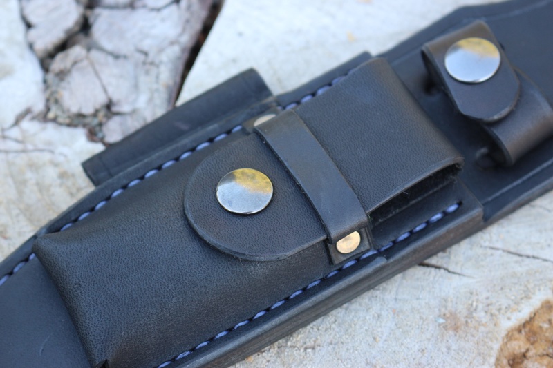 Excellent quality Canadian made leather sheath for the Fallkniven S1. This high grade saddlery leather sheath, heavy duty stitching and snaps, this is hand made. It accommodates the Fallkniven S1 and the front pouch accepts the Fallkniven DC4 stone and the loop on the side will take the Army sized firesteels.