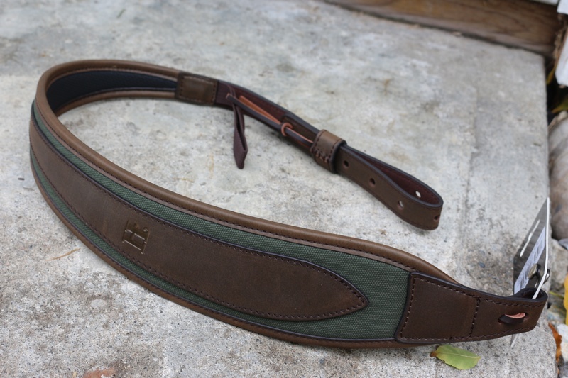 Rifle sling in canvas and leather. The strap is ergonomically designed with traditional and silent attachments. A thick neoprene layer on the rear increases comfort when the strap is worn over the shoulder.