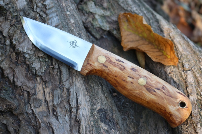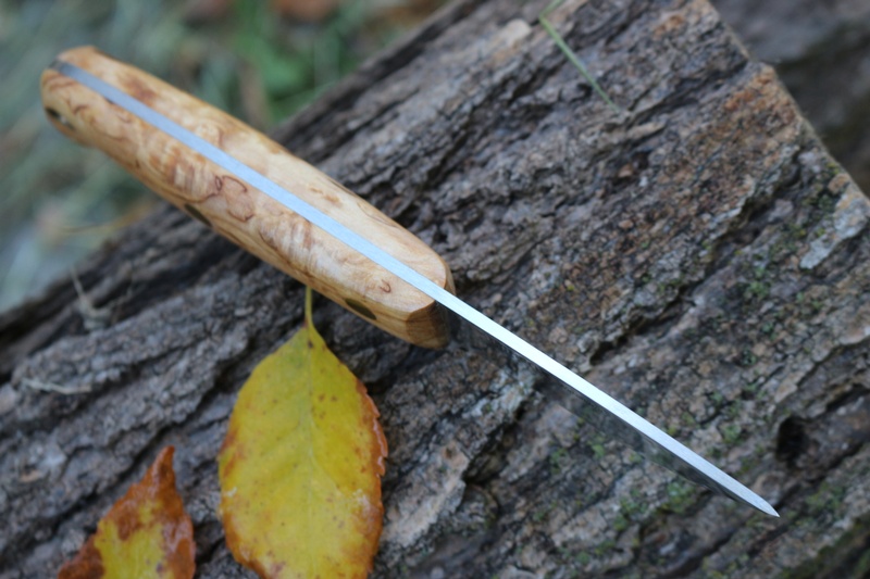 The Wabakimi (named after the Ontario Park) is very nicely designed, compact Outdoor knife, it has a good sized and practical 4.6in Curly Birch handle, with a nice palm swell and line flow, very comfortable and good for different grips.
