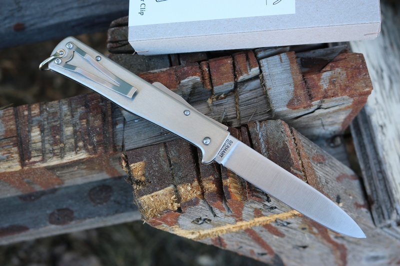 The Knife has a Brushed finish Steel body, the stamped 'Otter' as well as the clip and loop.
