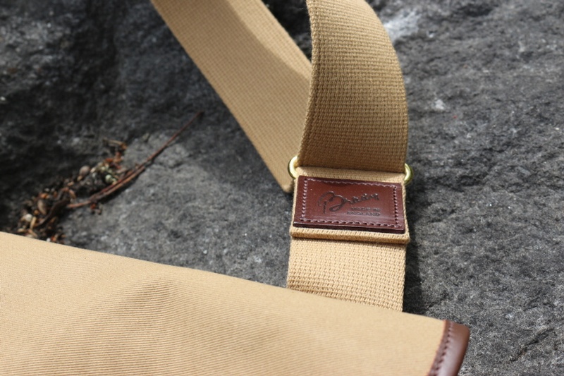 The Dart Bag with Liner in Kharki Canvas with Bridle Leather Trim and Brass Fittings. The Dart is named after the Famous Trout River of Devon, England.