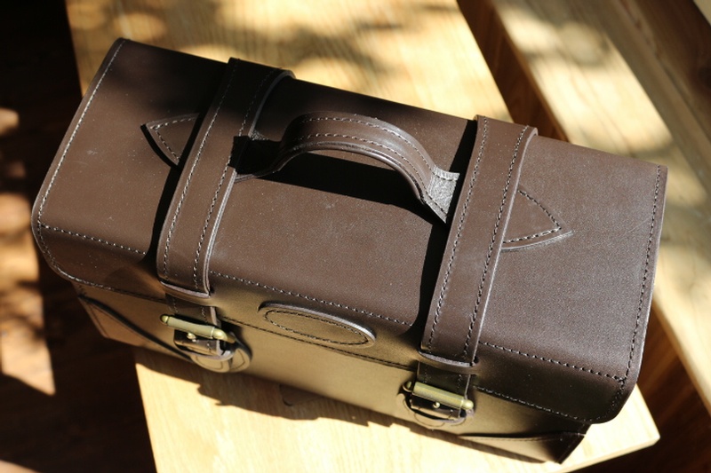 The Case is beautifully made in the best quality Leather and has a robust Carrry handle and double Brass Buckles. The Case has Corner reinforcements and a Name Disk. Heavy leather Shoulder Strap is also included.