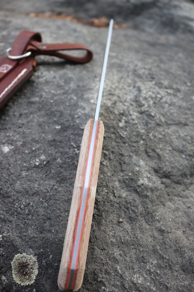The 3 Pin handle is made of the new Condor Desert Micarta, with Red Liners and Lanyard Hole.