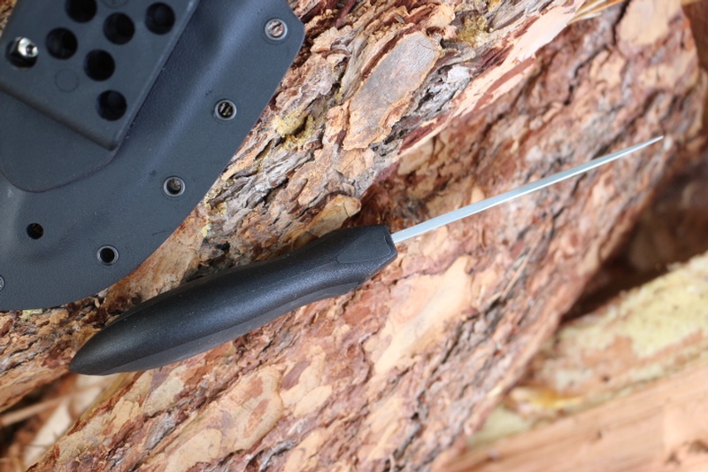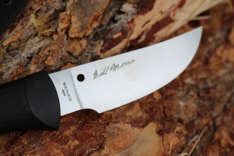 Spyderco is privileged to offer a production fixed-blade collaboration patterned in Bill Moran's ageless tradition. We've made it available in two distinct blade shapes. The FB02 (pictured) has a drop-point shape while the FB01 (see related item below) has an upswept Bowie-style blade. Both blades are flat-ground VG-10 and carry Bill's signature. They are tapered, starting thick where the blade joins the handle, thinning down the spine to a fine, uniformly ground tip. In the hand the knife conveys a unique feeling of balance, called by some a sweet spot. The sweet spot is due to the blade and handle being comparable in weight. This balance transfers into a feeling of steady control over the cutting edge. The FRN handle three-dimensionally fills out the palm and is inlayed with a panel of non-sliding Kraton. Highly recommended for hunting and camping both models come in a molded Boltaron sheath with multi-position G-Clip™ fastening system.