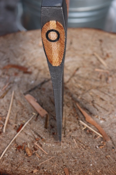Hickory handle, no head cover. Made in Sweden.