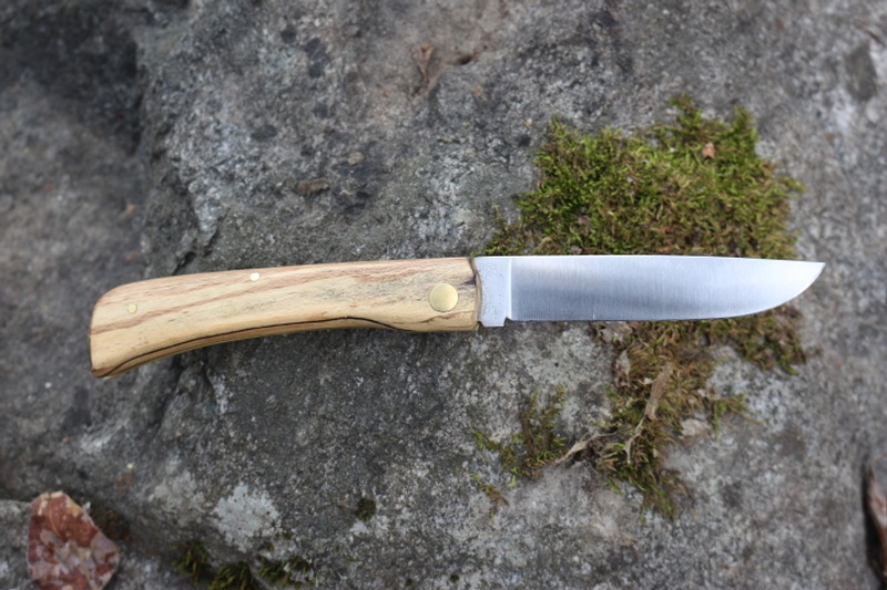 Smoked Oak handle slabs with a Heavy Brass pivot, Steel pins and liners and a simple, but reliable, Spring Steel design.
