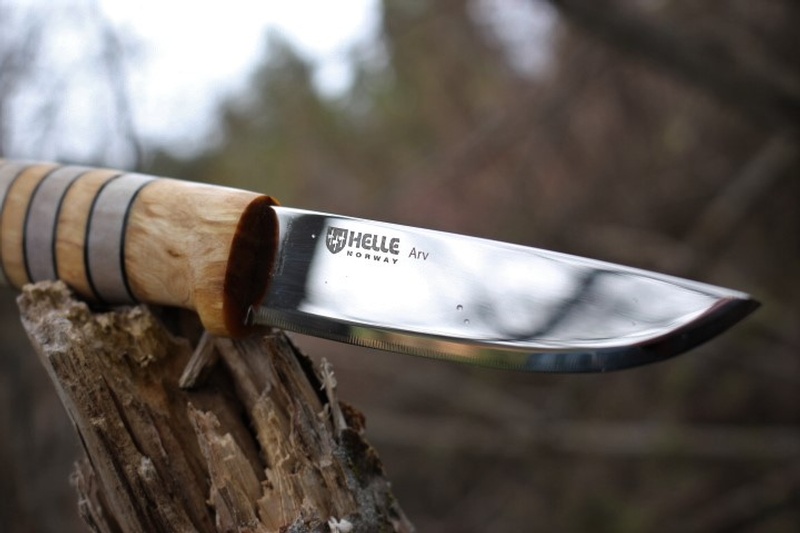 The knife has a small but distinct finger guard and a medium size blade of the finest triple laminated Helle steel. Shaped with a scandi edge and sharpened by hand to a razor-sharp edge.