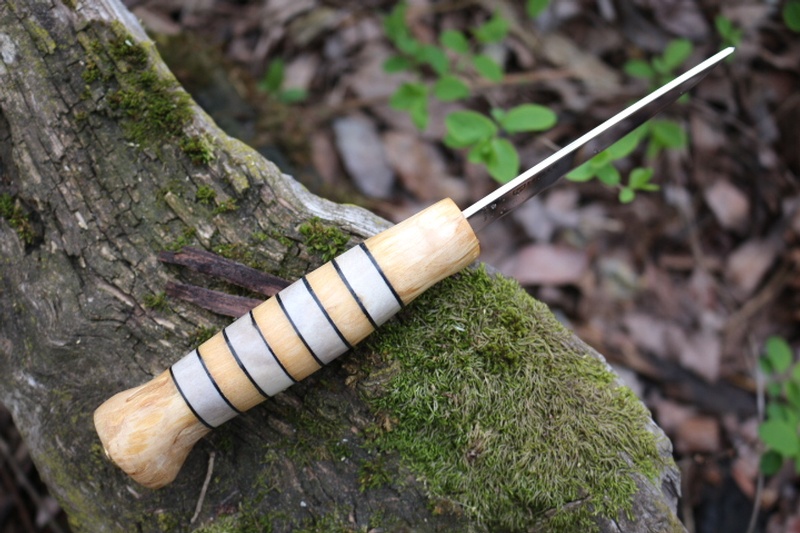 Arv is a versatile, lifelong companion that will handle cutting tasks with ease. This heritage knife has a medium size handle made from carefully selected curly birch stacked together with leather and staghorn. Shaped by hand to a smooth finish suitable for small to medium size hands.