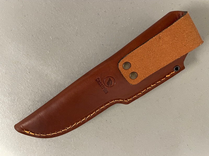 Full grain leather replacement sheath for the Casstrom lars Falt Knife, in cognac leather.